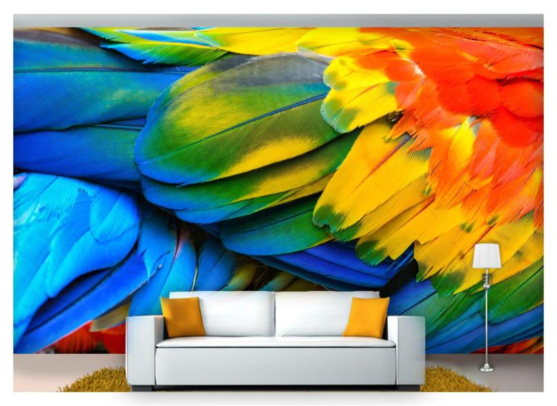 Papel De Parede Animais Penas Coloridas 3D Anm232