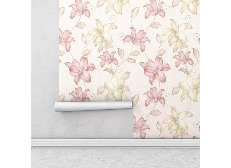 Papel De Parede Floral Rose Verde Musgo Para Quarto Sala Com Laminação