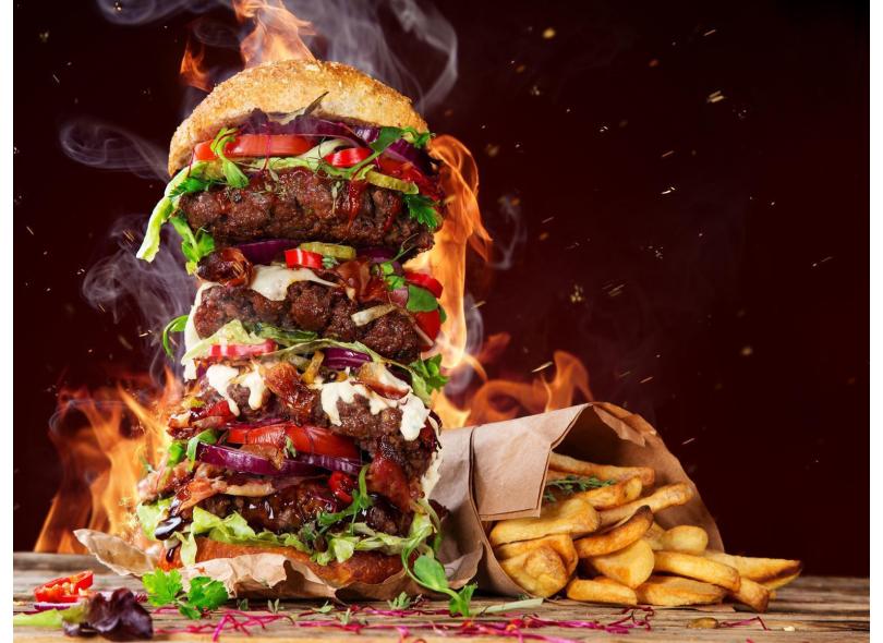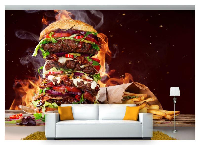 Papel De Parede Hamburguer Queijo Carne 3D Al128