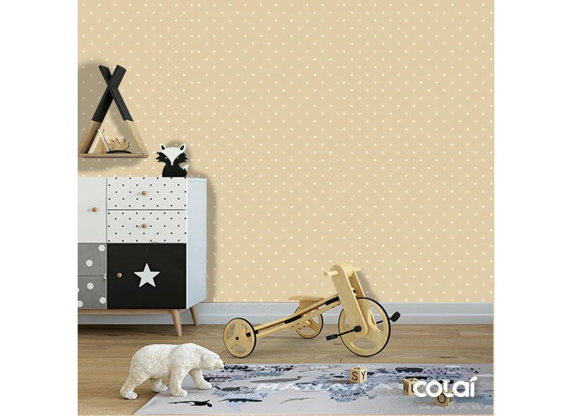 Papel De Parede Lavável Bolas s De Fundo Bege 6M