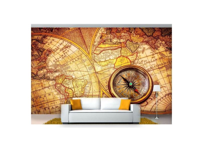 Papel De Parede Mapa Mundi Antigo Bússola Nmu17