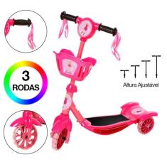 Brinquedo Infantil Patinete Scooter 3 Roda Barbie Cesta Luz