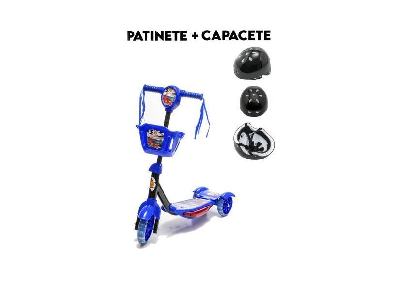 Patinete Azul Meninos 4 5 6 Anos Com Freio E Capacete - Dm Toys