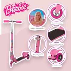 Patinete Barbie Feminino 3 Rodas Rosa Resistente Dobrável