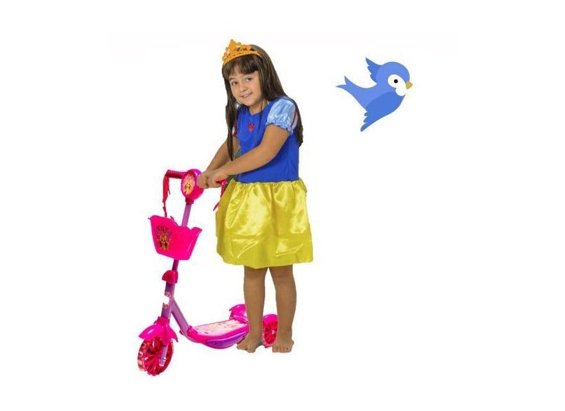 Patinete Com Regulagem De Altura Até 71 Cm Rosa + Fantasia - Dm Toys