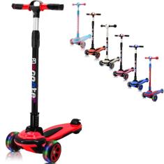 Patinete de 3 rodas para crianças e adolescentes de 6 a 18 anos, plataforma extral larga, 4 alturas ajustáveis e dobrável, scooter de LED piscante para meninos e meninas