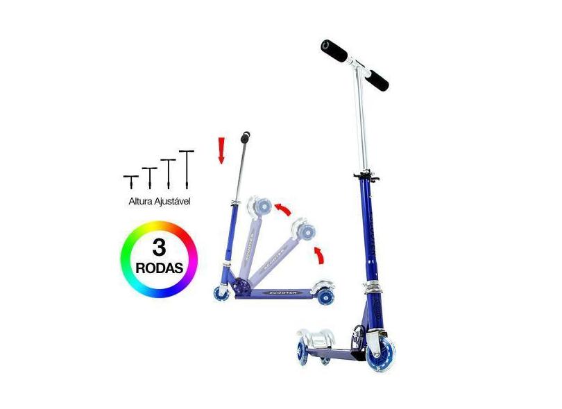Patinete de Criança de Três Rodas Ajuste de Altura Azul - DM Toys