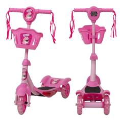 Patinete de Menina Barbie 3 Rodas Brinquedo Criança Com Led