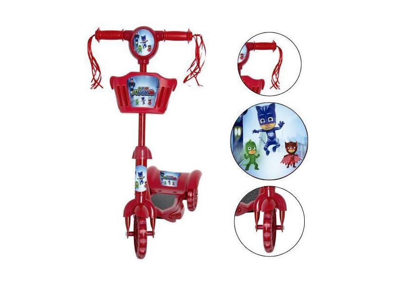 Patinete Infantil Criança 4 Anos Pj Masks Vermelho Cesta