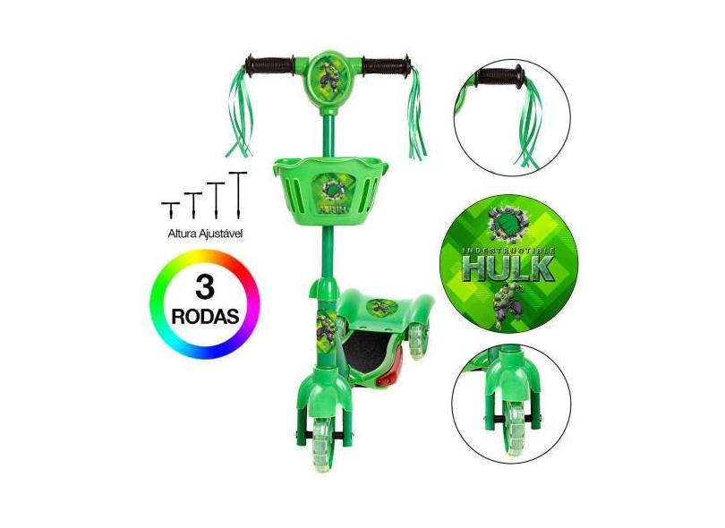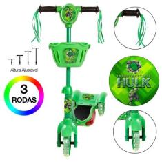Patinete Infantil Incrível Hulk C Led E Som Verde Cestinha - Zein