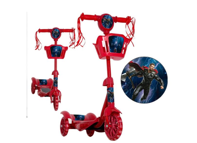 Patinete Infantil Menino Thor Ajustável Luz Led Vermelho
