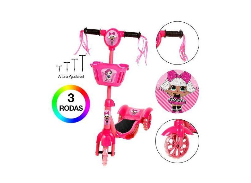 Patinete Infantil Rosa Da Lol 3 Rodas Com Led E Som - Toys 2U