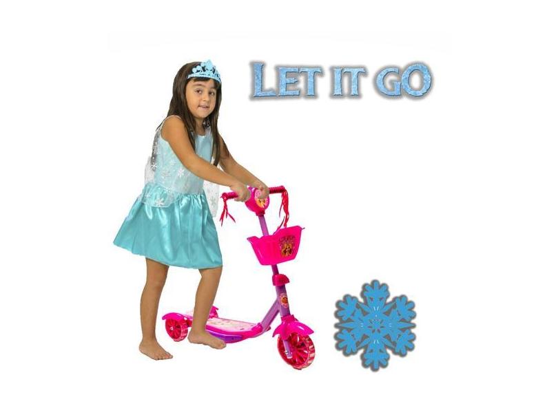 Patinete Infantil + Roupinha Azul De Princesa + Coroa Tiara - Dm Toys
