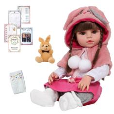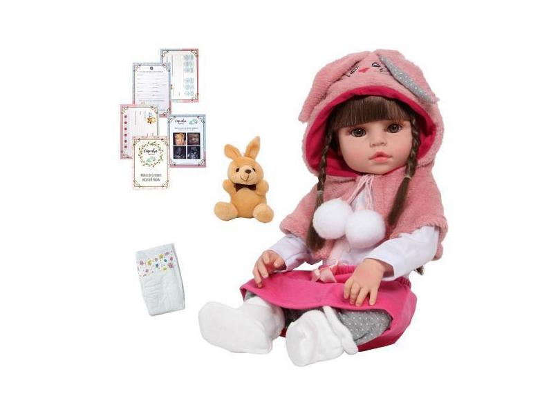 Bebê Tipo Reborn Realista Fofinha Com Coelhinho Pelúcia - Cegonha Rebo