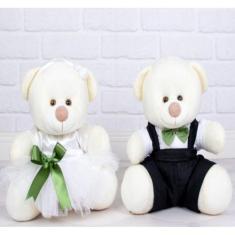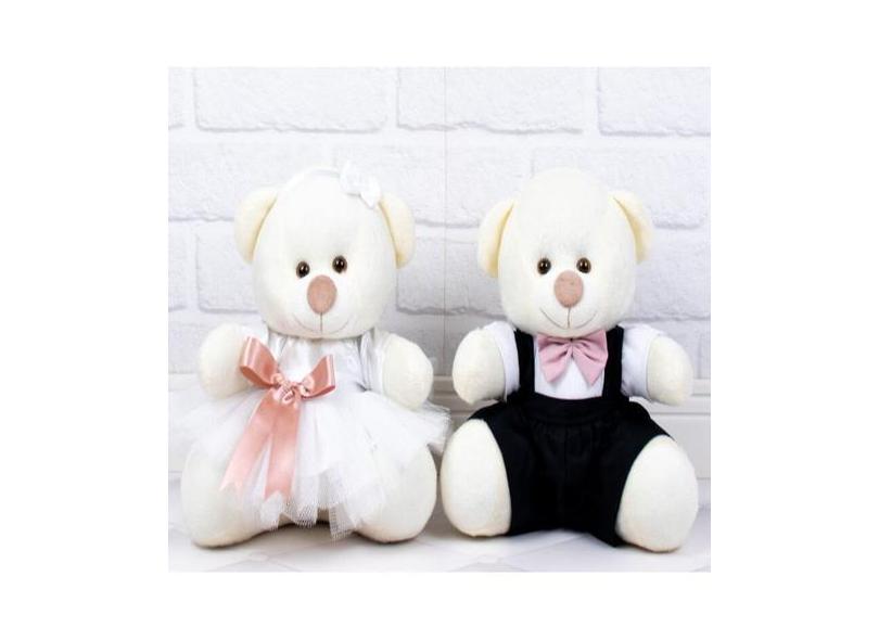 CASAL URSOS TEDDE 22cm - PAJEM PRETO DAMINHA BRANCA PELUCIA PALHA - CK