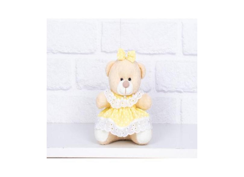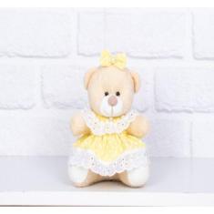 PELUCIA URSO TEDDE 12cm - VESTIDO BABY POÁ AMARELO - CKD CONFECÇÕES, P