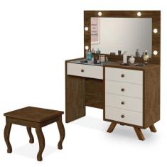 Penteadeira Camarim com espelho banqueta LED Luapa Luna - Malbec/OFF White