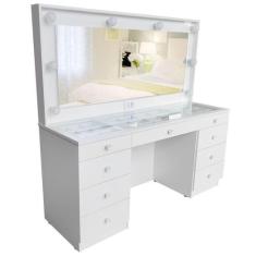 Penteadeira Camarim MDF Completa, 9 gavetas, Espelho, Vidro, Parte elétrica pronta - branco - Dom Móveis