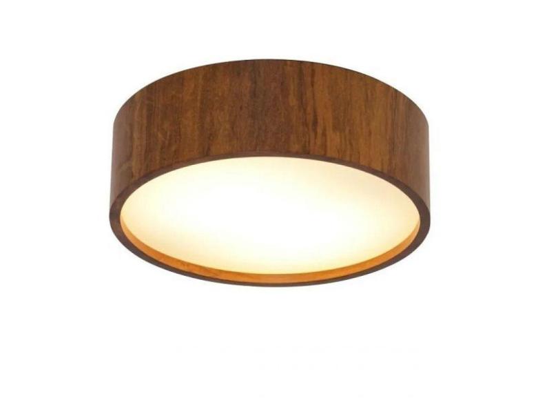 Plafon Sobrepor Redondo 40Cm Em Madeira Imbuia Bivolt
