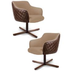 Kit 02 Poltronas Decorativas Jade Base Xis Giratória C-129 Corano Tressê Linho Bege - Domi