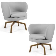 Kit 02 Poltronas Decorativas Melissa Base Ka Giratória Castanho C-315 Linho Claro - Domi