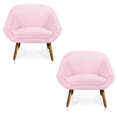 Kit 02 Poltronas Giovana Suede Bege Pés Palito Castanho