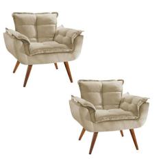 Kit 2 Poltronas Decorativa Opala Suede Bege - Twdecora