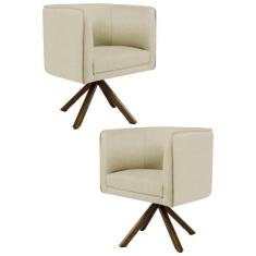 Kit 2 Poltronas Decorativas Base Giromad Madeira Betina C-129 Linho Bege Claro - Domi