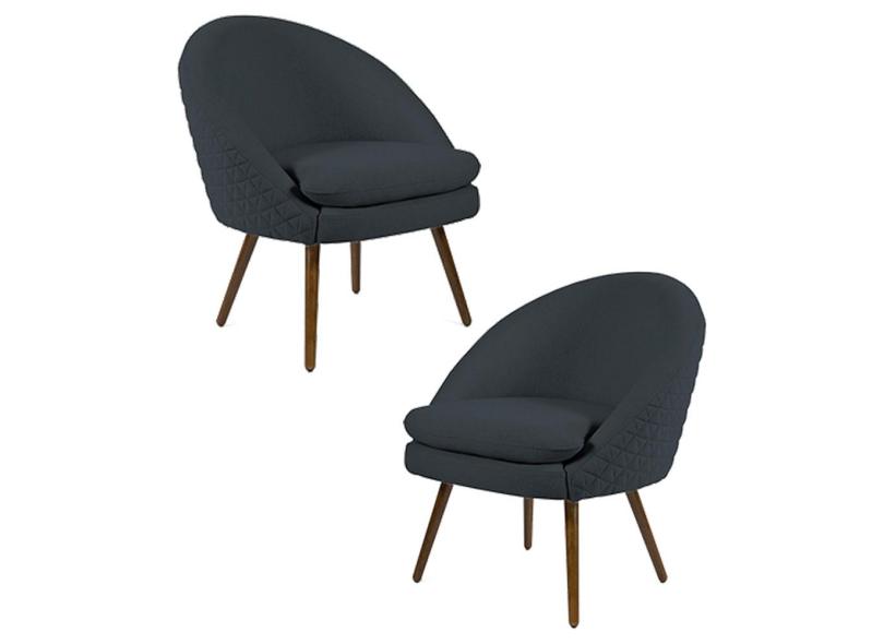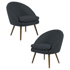 Kit 2 Poltronas Decorativas Pés Palito Rafa C-465 Linho Chumbo - Domi