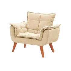 Poltrona decorativa Opala bege marfim base pé palito MeuNovoLar