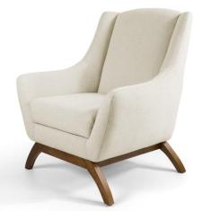 Poltrona Decorativa Sala de Estar Juliet Base de Madeira B-309 Veludo Bege - Domi
