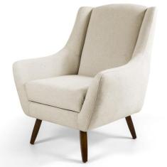 Poltrona Decorativa Sala de Estar Juliet Pés de Madeira C-107 Linho Bege - Domi