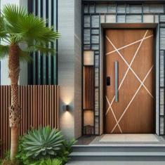 Kit Porta de Madeira Frisada 215x109cm Batente 14cm Fechadura Digital e Puxador Rodam