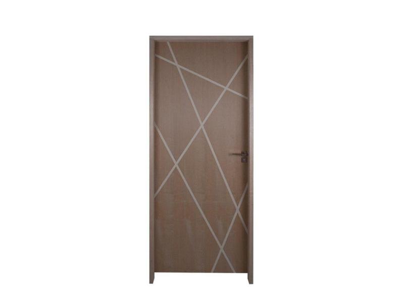 Kit Porta de Madeira Frisada 215x109cm Batente 14cm Fechadura Rolete e Puxador