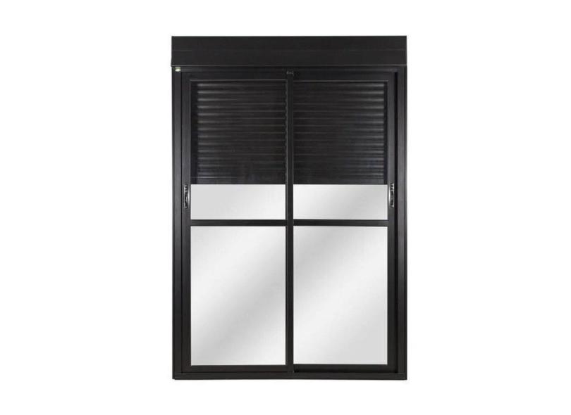 Porta de Aluminio com Persiana Integrada 220x120cm 2 Folhas Manuais Preto