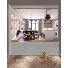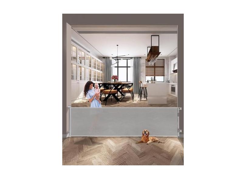 Portão retrátil para bebês com 300 cm de largura, cinza interno/extern