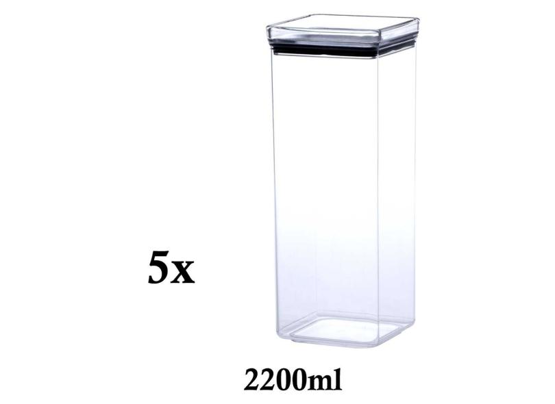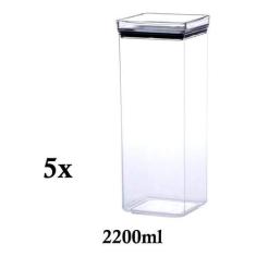 5 Potes Herméticos quadrado empilháveis 2200ml para armazenamento de alimentos