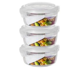 Conjunto 3 Pote Vidro 620Ml Hermético Marmita Tampa 4 Travas