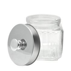Pote de Vidro Quadrado Tampa Rosqueável Prata1,2 litros