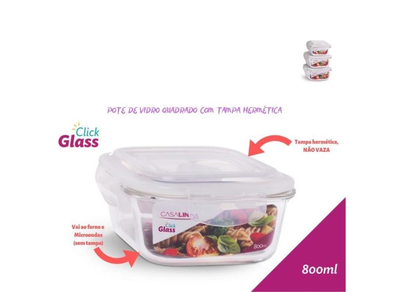 Pote Vidro 800ML (Vai ao Forno, Microondas) Quad c/ Tampa
