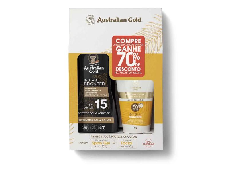 Australian Gold Kit Protetor Solar Spray Gel Instant Bronze Fps15 237Ml + Protetor Facial Fps50 50G