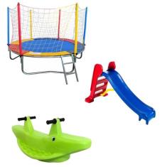 Cama Elástica Pula Pula 2,30M + Escorregador Médio + Gangorra 2 Lugare