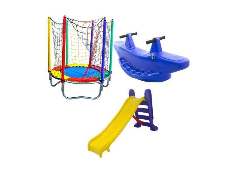 Pula Pula Cama Elástica Trampolim 1,40M + Escorregador Médio + Gangorr