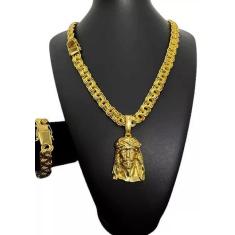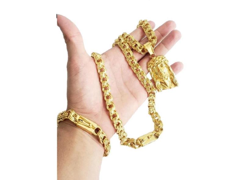 Cordão Banhado A Ouro 18K Friso 12Mm Pulseira Pingente Luxo