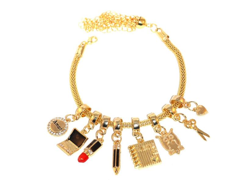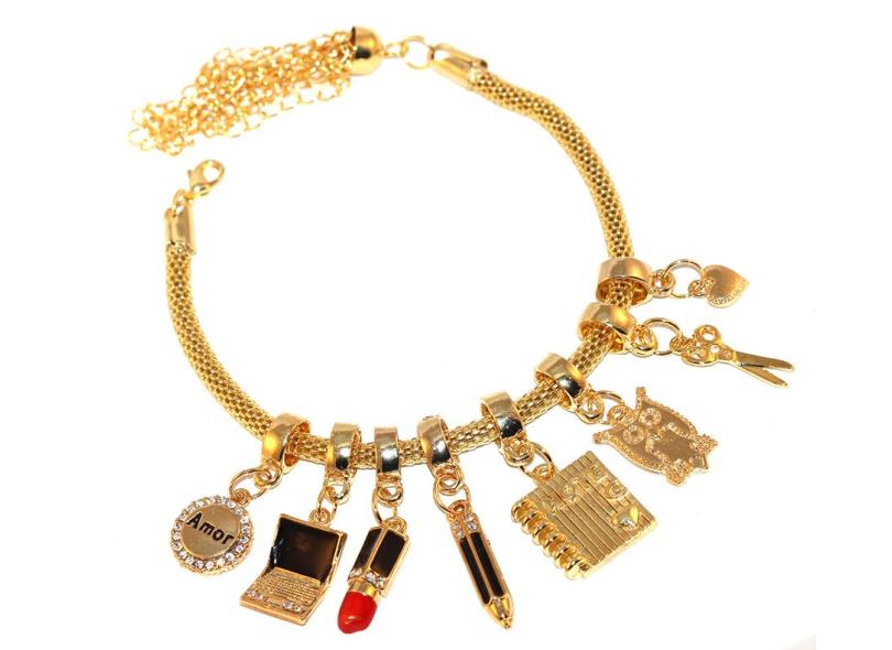 Pulseira Berloque Pedagogia Professora Folheado Ouro 18k