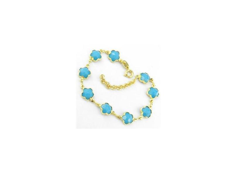 Pulseira Feminina 20 A 23cm Azul Folheada Ouro Pl424