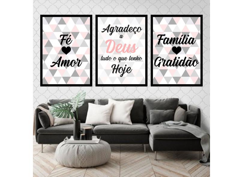 Kit 3 Quadros Fé, Amor, Família Triângulos 45x34cm