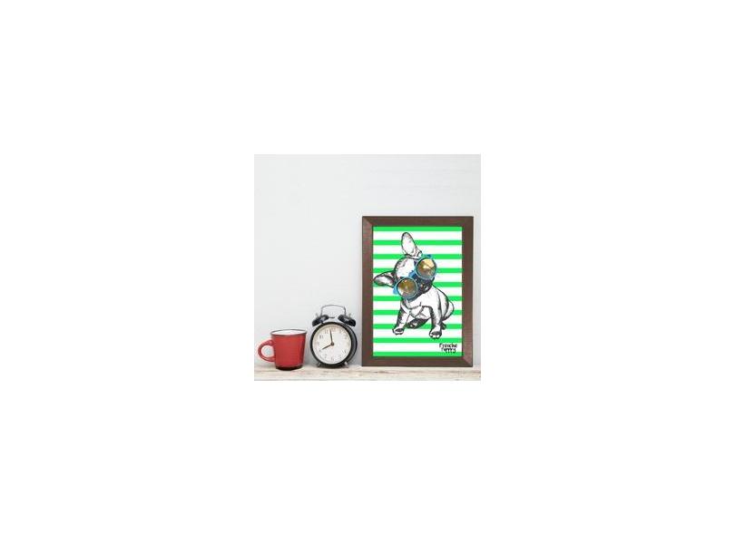 Quadro Decorativo com Moldura Marrom Cachorro Puggy 33x43cm