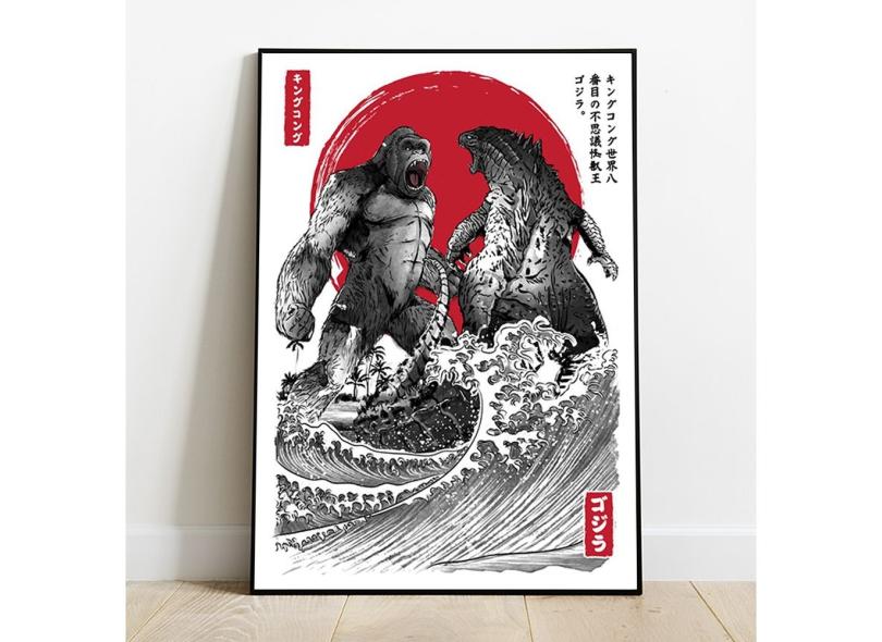 Quadro decorativo Poster A4 Kong Vs Godzilla Desenho arte Japão