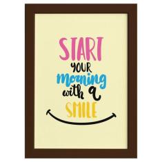 Quadro Frase de Motivação Morning Smile Moldura Marrom 22x32